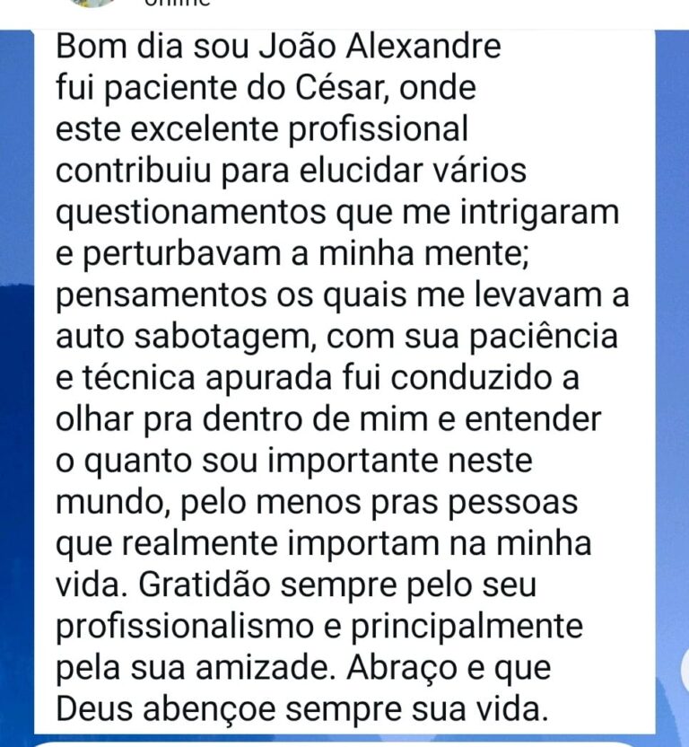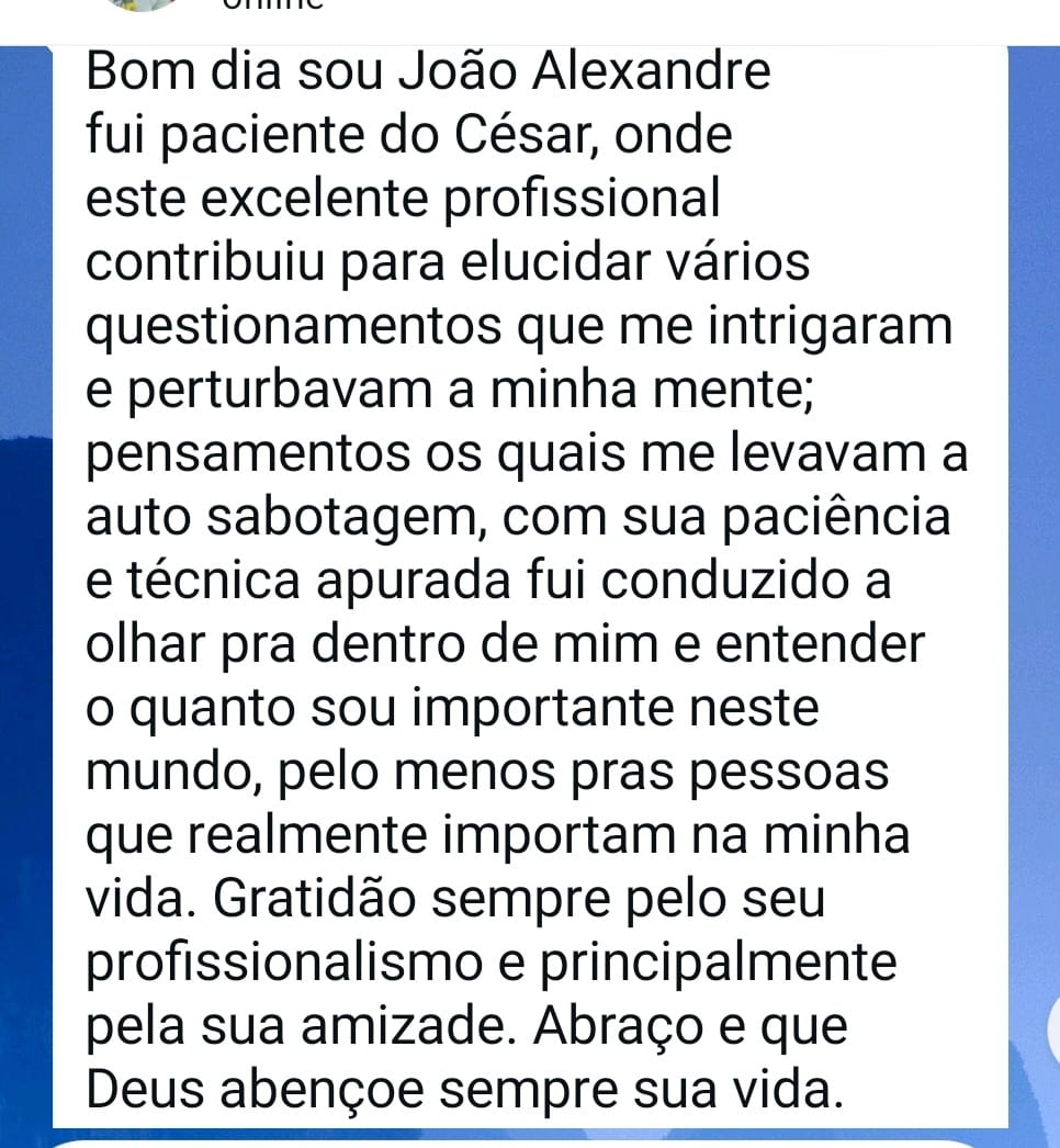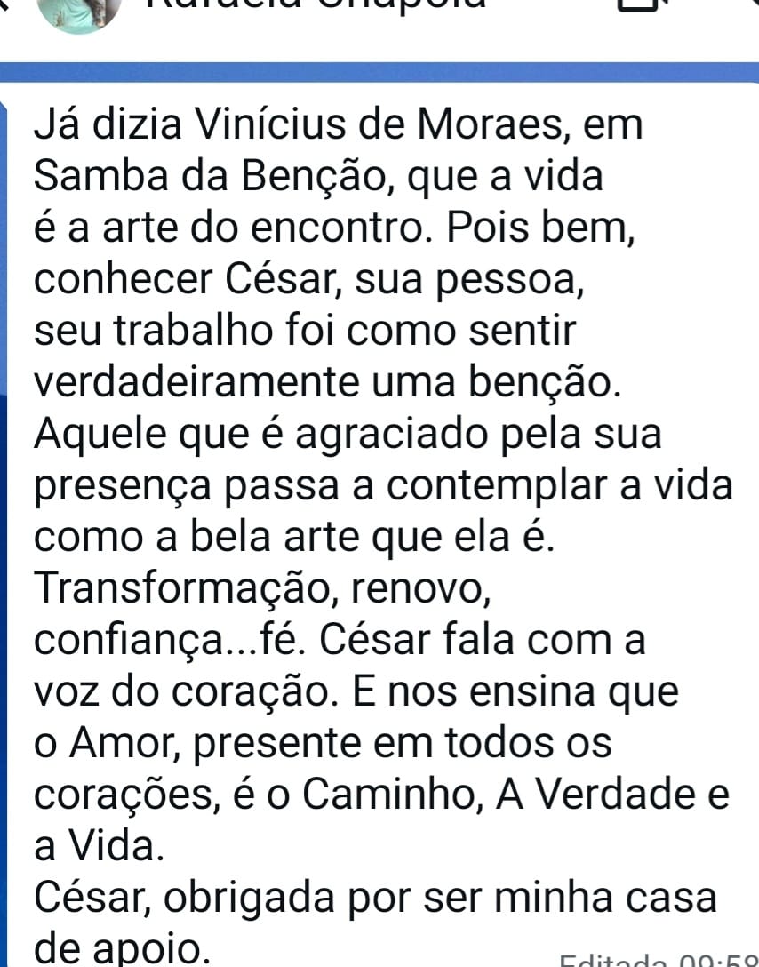 Meu nome é César Oliveira. Sou Terapeuta Integrativo e Orientador em Saúde Emocional e Vínculos Familiares.